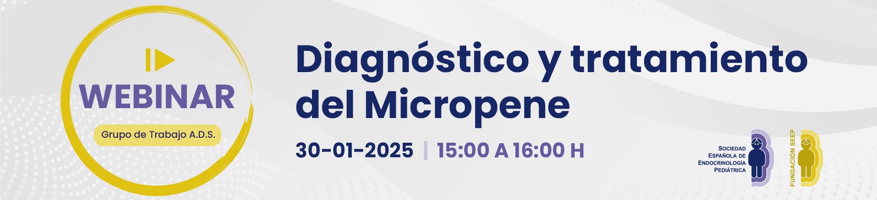 Información sobre el próximo webinar organizado por el Grupo de Trabajo sobre Anomalías de la Diferenciación sexual (ADS) de la Sociedad Española de Endocrinología Pediátrica (SEEP). Este evento tendrá lugar el próximo 30 de enero de 2025, de 15:00 a 16:00 horas, y confiamos en que pueda ser de interés para sus asociados.