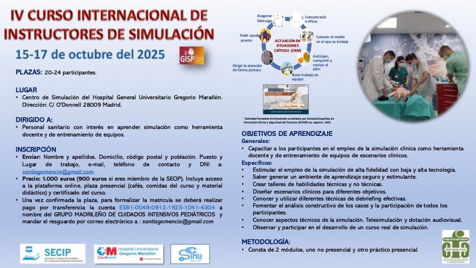 Por todo lo anterior, es imprescindible impartir el máximo número posible de cursos de Simulación Médica avanzada y que utilicen una correcta metodología de enseñanza, en este caso la recomendada por el Grupo Internacional de Simulación en Pediatría (GISP).