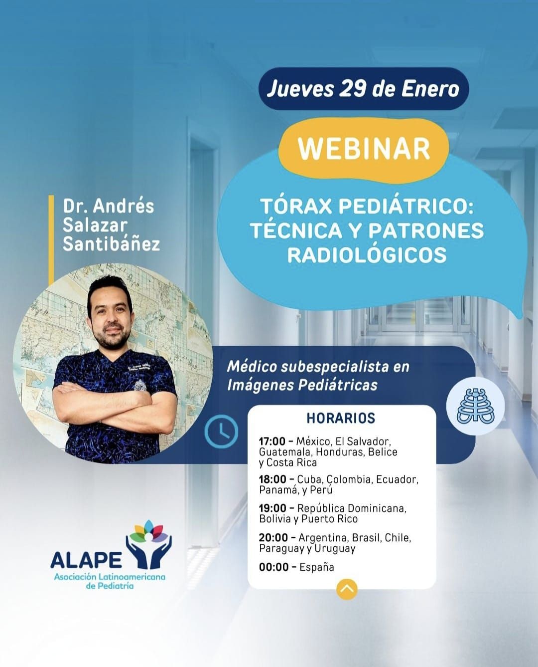 ALAPEWebinar dirigido a médicos especialistas en atención pediátrica y residentes de pediatría, que busca entregar herramientas para reconocer una adecuada técnica radiográfica y analizar los patrones radiológicos más comunes a evaluar en el tórax del paciente pediátrico.