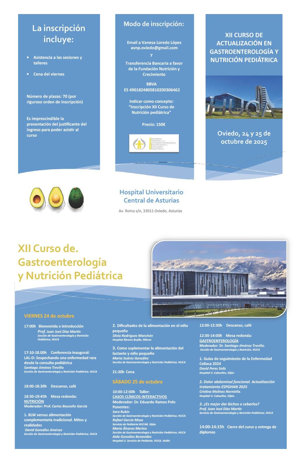Oviedo, AsturiasEl XII Curso de Actualización en Gastroenterología y Nutrición Pediátrica se celebrará los días 24 y 25 de octubre de 2025 en el Hospital Universitario Central de Asturias.